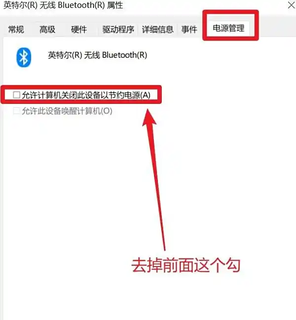 取消勾选“允许计算机关闭此设备以节约电源(A)”选项。